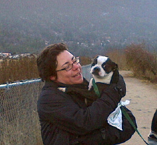 This is the story of the amazing wonder dog, Tex, a little black and white Boston terrier who survived 8 days running around Nelson, panicked, confused and alone.  He went missing on Dec. 13th – having run away from the house next door to us. A cousin of that neighbour was visiting from Castlegar when Tex ran out of a door that had been left open.  She put ads on various sites advertising her missing dog – and there had been several “sightings” all week – someone saw him way uphill at the “Rail and Trails” (where all manner of wild life roam), someone else saw him up at the hospital and still others spotted him down at the lake. He was extremely skiddish and shy and avoided capture each time, dodging and running like a fiend everywhere he’d been seen. He was starting to seem like an unreal creature – a Nelson legend – and we were finding it hard to believe that he would still be alive after 8 days outdoors — in December! The next door neighbour was out on her deck every morning, calling plaintively “TE-E-E-EX.. T-E-E-EX.. TE-E-E-EX….” Each morning that week, when we heard the neighbour calling for him, we knew it meant that Tex was still out there somewhere, scared, cold and hungry — but too shy to come to people (which we were beginning to believe would be his undoing).