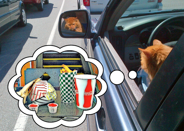 And then the tricky part: loading into the car and relocating ourselves, the dog and very geriatric cat and as much of our foofahraw as possible for each and every open house and each and every viewing in between (ie. almost every day). Joey the dog and Bob the cat were real troopers – wonderful company who seemed to enjoy the adventure of it all. Bob even tried his hand at sharing the driving.